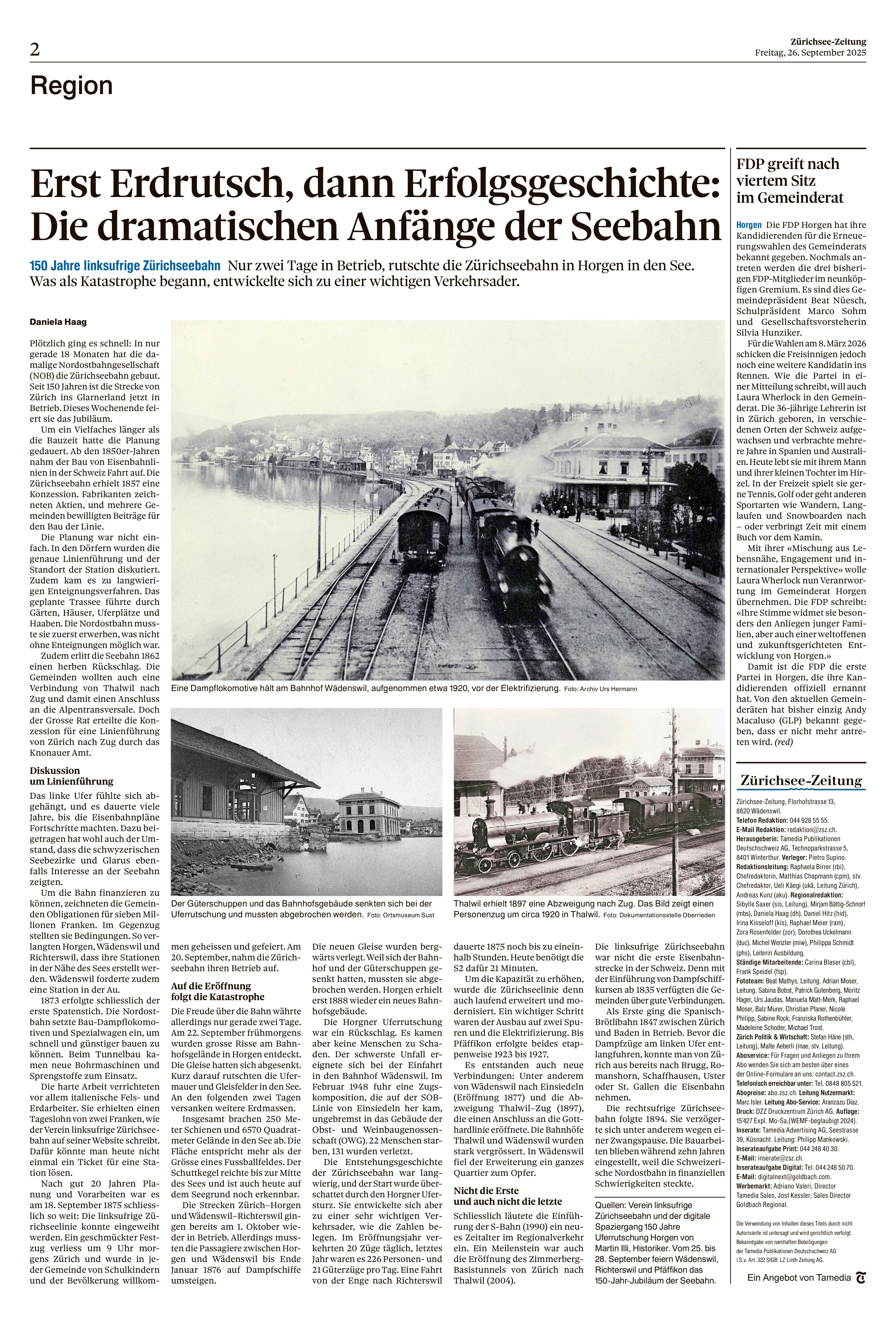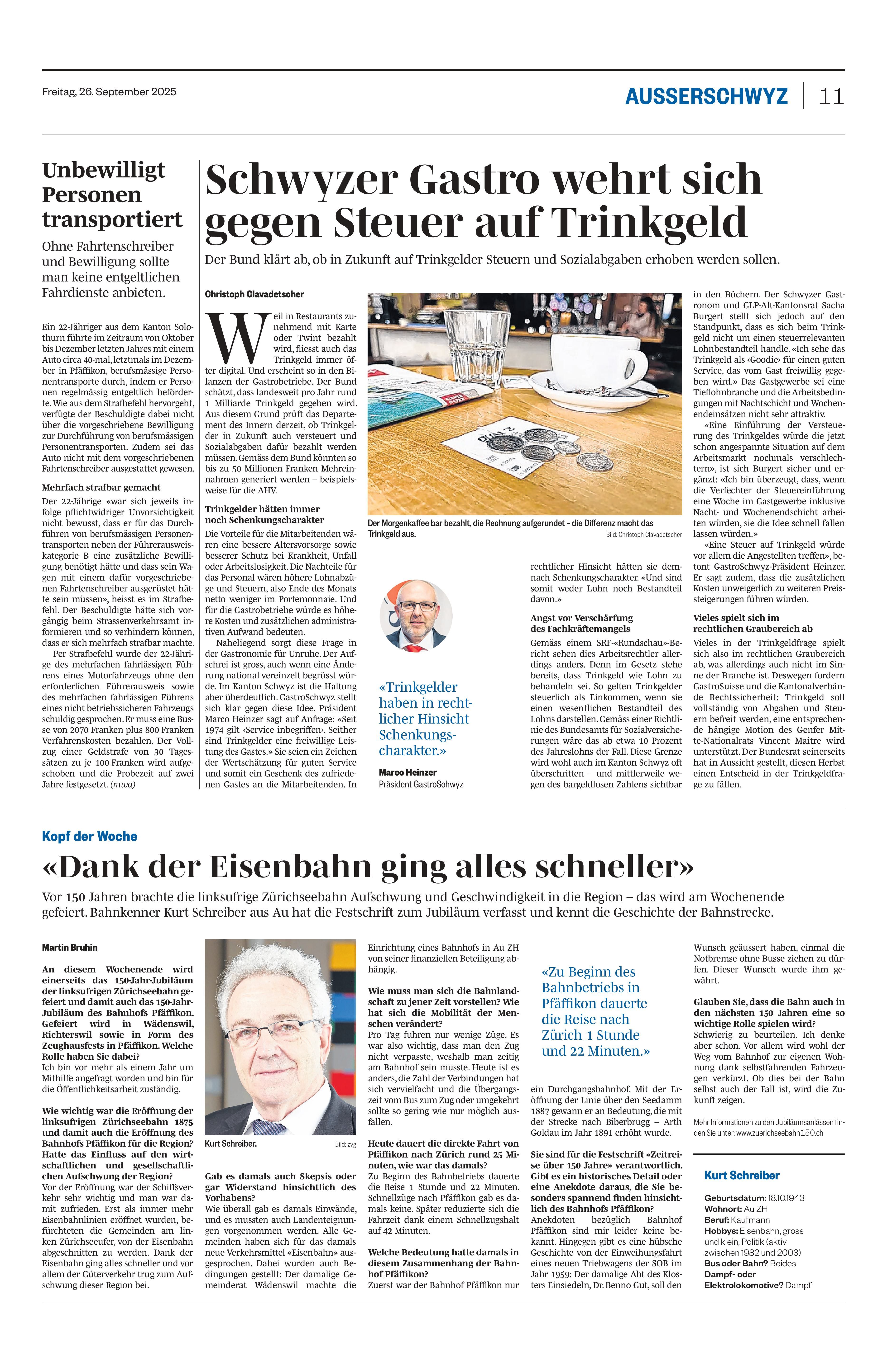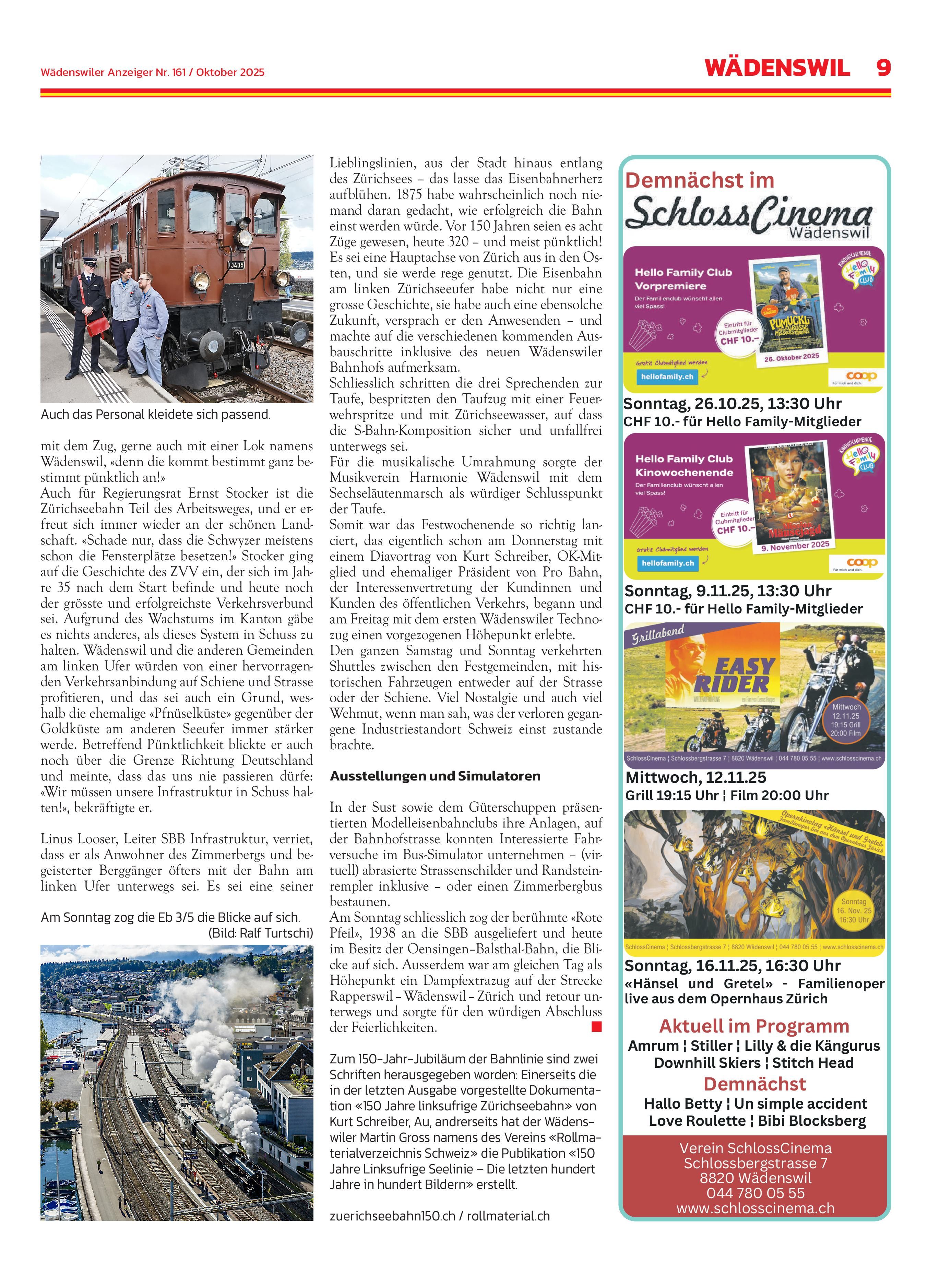 Quelle: Zürichsee-Zeitung 23. September 2025, Text Gustav Cattapan, Fotos LZB, Verein 150 Jahre linksufrige Zürichseebahn