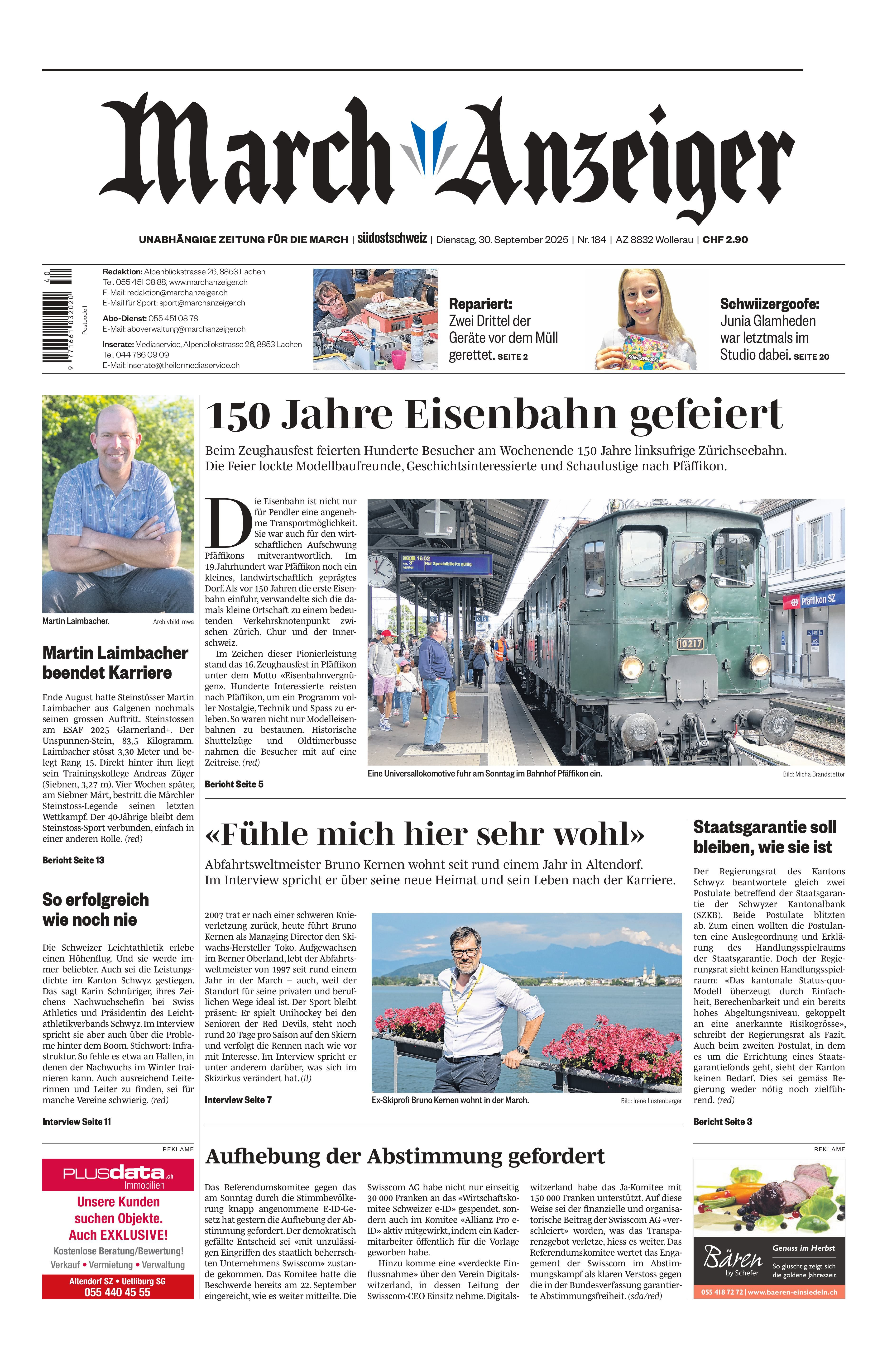 Quelle: March Anzeiger 26. September 2025, Text von Martin Bruhin